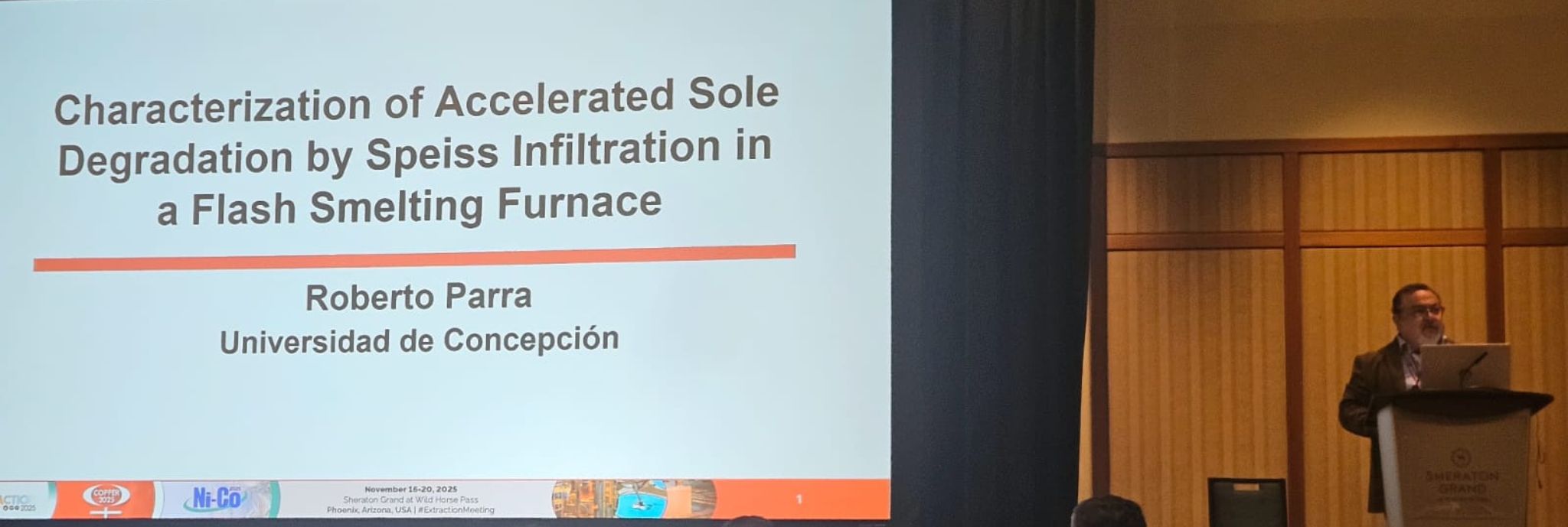 Su trabajo, titulado “Characterization of accelerated sole degradation by speiss infiltration in a Flash Smelting Furnace”, se centra en la infiltración de speiss —una fase metálica rica en cobre y arsénico con un punto de fusión bajo, alta densidad y baja viscosidad— identificada como el principal factor de degradación acelerada de la solera en el horno Flash de la Fundición Chuquicamata.