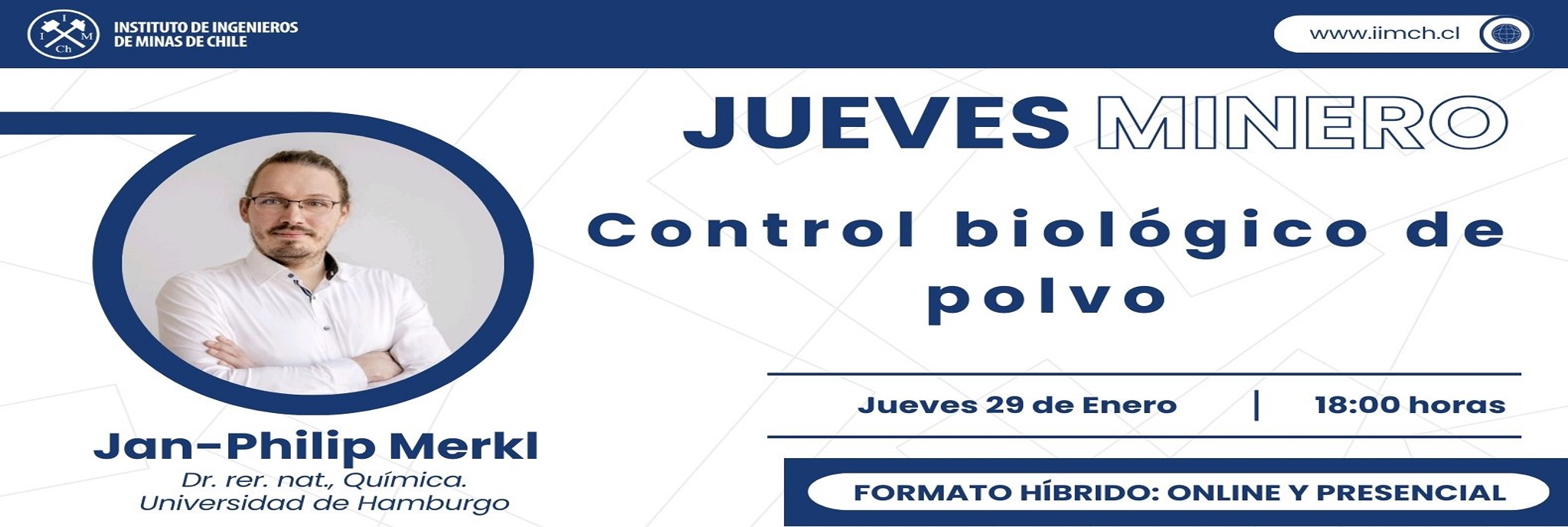 El Instituto de Ingenieros de Minas de Chile (IIMCh) dio inicio al ciclo Jueves Mineros 2026 con la realización de su primera jornada del año, instancia que abordó desafíos clave para una minería más eficiente y sustentable, a través de la exposición del Dr. Jan-Philip Merkl, especialista en soluciones biotecnológicas aplicadas al control de polvo en faenas mineras