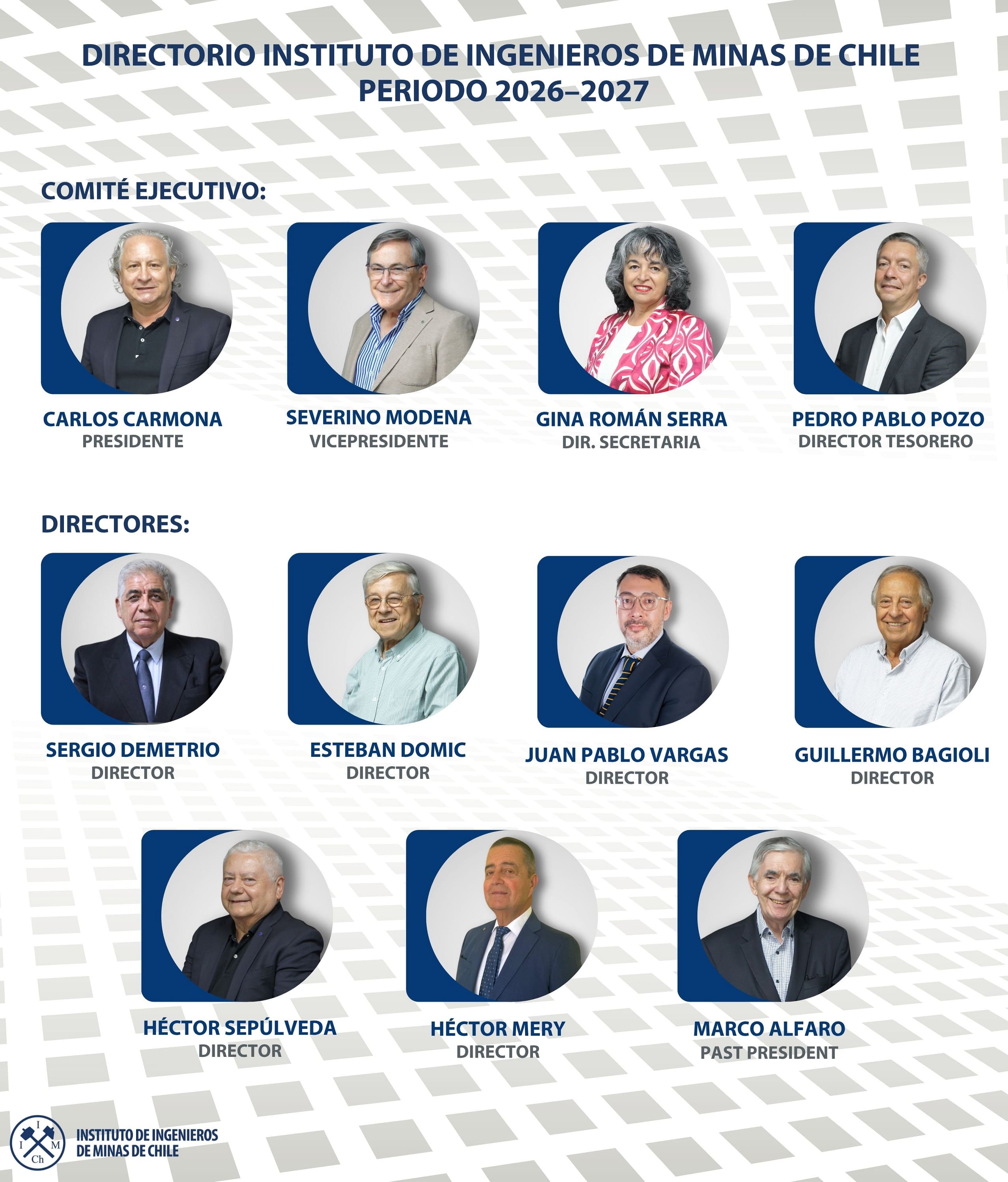 Directorio del Instituto de Ingenieros de Minas de Chile correspondiente al periodo 2026–2027.