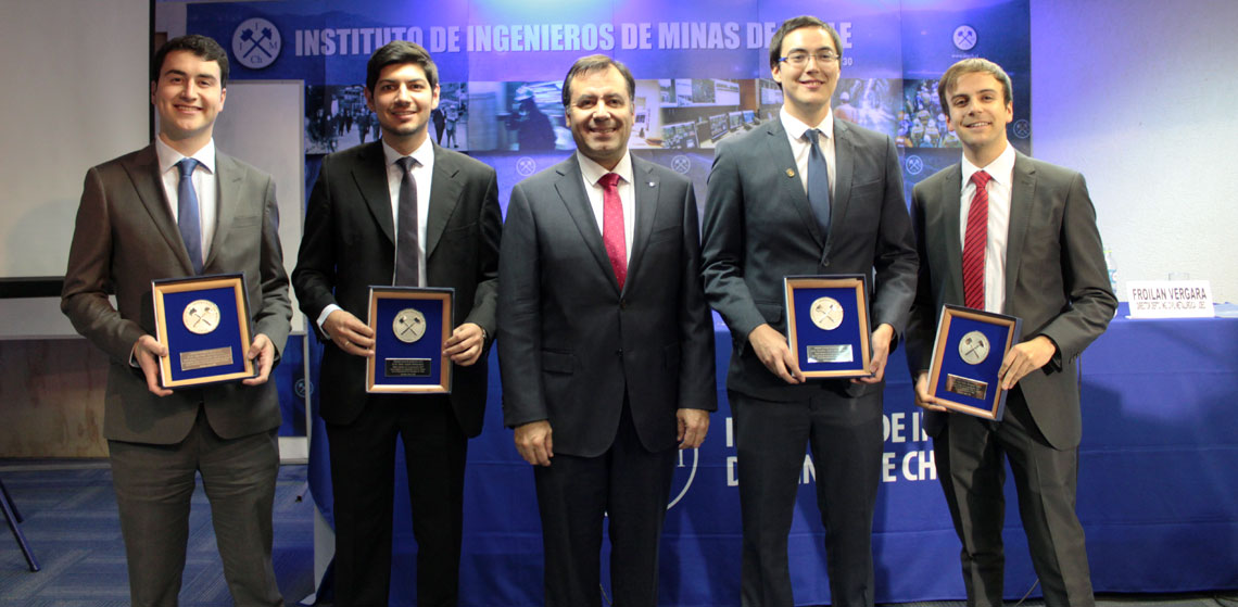 Como ya es tradición, el Instituto de Ingenieros de Minas de Chile realizó la ceremonia de Bienvenida a los Titulados y Egresados de la carrera de Ingeniería en Minas del año académico correspondiente al 2017. Los directores Juan Pablo Vargas (Universidad de Santiago), Xavier Emery (Universidad de Chile), Juan Carlos Salas (Universidad Católica) y Froilán Vergara (Universidad de Concepción) fueron quienes, junto a Juan Pablo González, premiaron a los alumnos destacados.