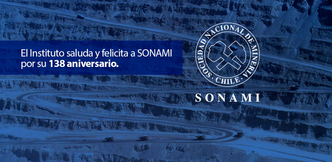 El Instituto de Ingenieros de Minas de Chile envía un cordial saludo a la Sociedad Nacional de Minería (SONAMI) por celebrar este 26 de septiembre 138 años de existencia. Hoy son reconocidos como una de las organizaciones empresariales más antiguas de Chile; por lo que desde la mirada de los profesionales de la minería nos sentimos unidos al compromiso de SONAMI adquirido desde su fundación para el desarrollo de la pequeña, mediana y gran minería de nuestro país.