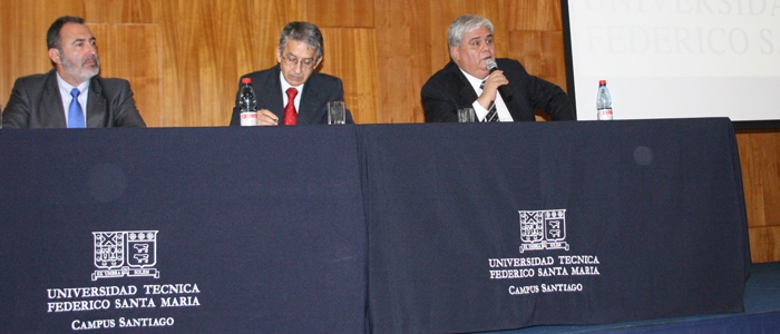 Dirigiéndose a un nutrido grupo de estudiantes, el Presidente del IIMCH Leopoldo Contreras realizó un motivador discurso frente a los nuevos alumnos de Ingeniería Civil de Minas de la Universidad Técnica Federico Santa María.