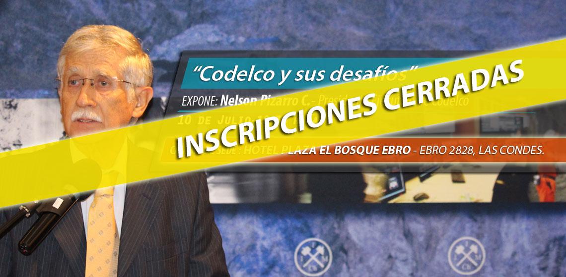 El Instituto de Ingenieros de Minas de Chile ha organizado una conferencia en la cual Nelson Pizarro presentará el tema titulado“Codelco y sus desafíos”.