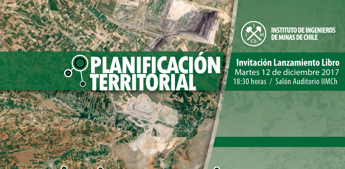 Juan Pablo González T., Presidente del Instituto de Ingenieros de Minas de Chile, tiene el agrado de invitar al Lanzamiento del Libro “Planificación Territorial”.