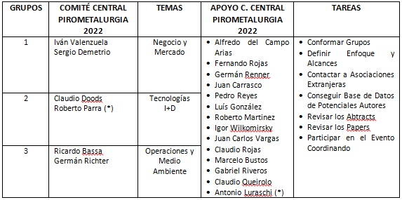 Dentro de las principales tareas de esta Comisión está la organización del “Simposio de Pirometalurgia 2022”, que tiene como objetivo reunir a expertos mundiales para abordar las últimas innovaciones en pirometalurgia del cobre y su impacto en la industria del cobre. En particular, el Simposio también brindará una excelente oportunidad para explorar los desarrollos recientes en el procesamiento pirometalúrgico de cobre con el fin de discutir los principios de ingeniería subyacentes.