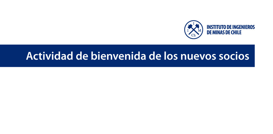Por primera vez en su historia, el Instituto de Ingenieros de Minas de Chile realizó, de manera virtual, una actividad de bienvenida a los nuevos socios que son parte del IIMCh. En la ocasión, participó el Presidente del Instituto, Sr. Juan Rayo, la Vicepresidenta, Sra. María Isabel González, los directores, Sr: Severino Modena y Edgardo Marinkovic, y un ex Presidente, Sr. Hans Göpfert.