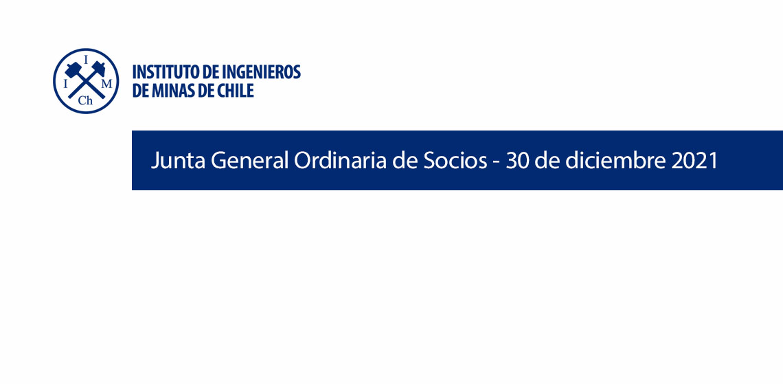 El pasado jueves 30 de diciembre se llevó a cabo la segunda Junta General Ordinaria de Socios de 2021, conforme lo estipula el Art. 29º de los Estatutos del Instituto de Ingenieros de Minas de Chile.
