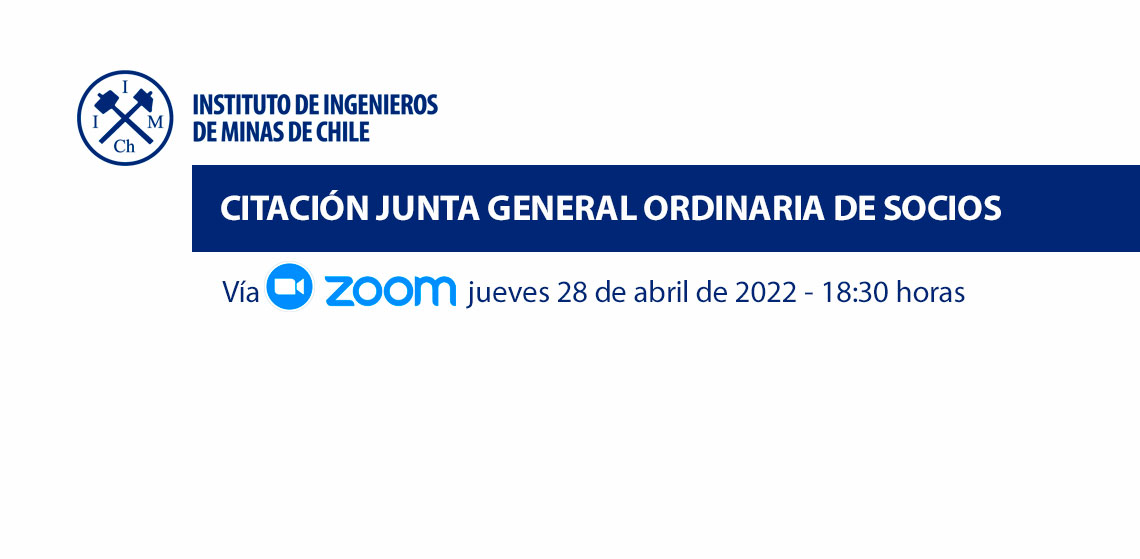Tengo el agrado de citar a usted a Junta General Ordinaria de Socios, para el día jueves 28 de abril de 2022, a las 18:30 hrs., en convocatoria única, a través de plataforma Zoom.