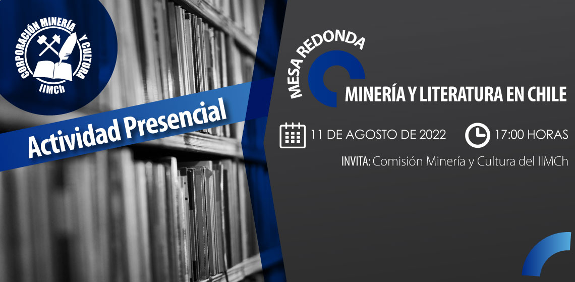La Comisión de Minería y Cultura, en el marco del mes de la minería, invita a los socios (as) del Instituto de Ingenieros de Minas de Chile y a la comunidad en general a la mesa redonda “Minería y Literatura en Chile”, actividad que se llevará a cabo el jueves 11 de agosto a las 17:00 horas de manera presencial en el Salón Auditorio del IIMCh. El evento, además, será transmitido vía Zoom.