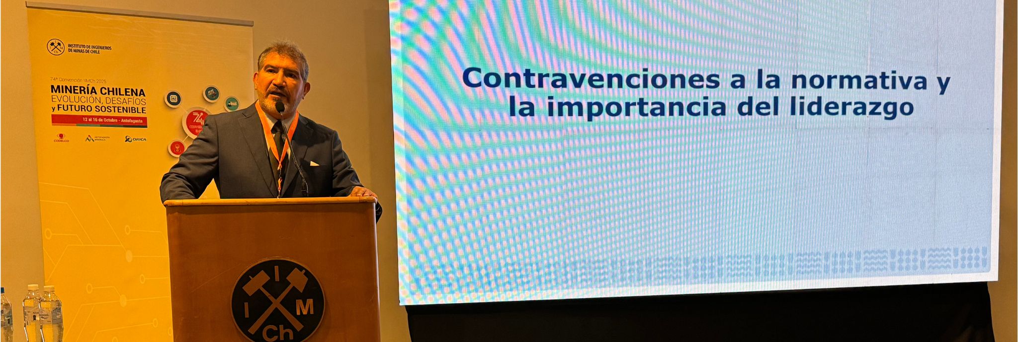 Durante la segunda jornada de la 74ª Convención Anual del Instituto de Ingenieros de Minas de Chile (IIMCh), el director regional de Antofagasta del Servicio Nacional de Geología y Minería (SERNAGEOMIN), Yerko Díaz, presentó la exposición titulada “Contravenciones a la normativa y la importancia del liderazgo”, donde abordó la estrecha relación entre el cumplimiento regulatorio, la seguridad operacional y el desarrollo de una cultura organizacional sólida.