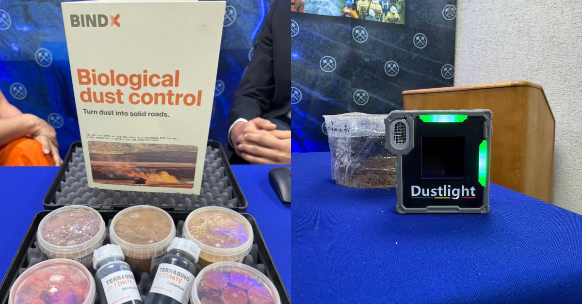 La presentación, titulada “Control biológico de polvo”, puso el foco en una alternativa innovadora y ambientalmente responsable para la supresión de polvo y estabilización de caminos, basada en el uso de agentes biológicos como biopolímeros y microorganismos. Esta tecnología permite aumentar la cohesión del suelo, reducir la dispersión de material particulado y disminuir de forma significativa el consumo de agua, en comparación con métodos tradicionales de riego o supresores químicos.